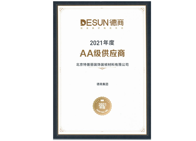 2022年6月,特普麗與德商集團在長期的合作中,以優(yōu)質(zhì)的產(chǎn)品質(zhì)量、完善的指導(dǎo)技術(shù)、全面的售后服務(wù),榮獲“德商集團—2021年度‘AA級供應(yīng)商’” 稱號!