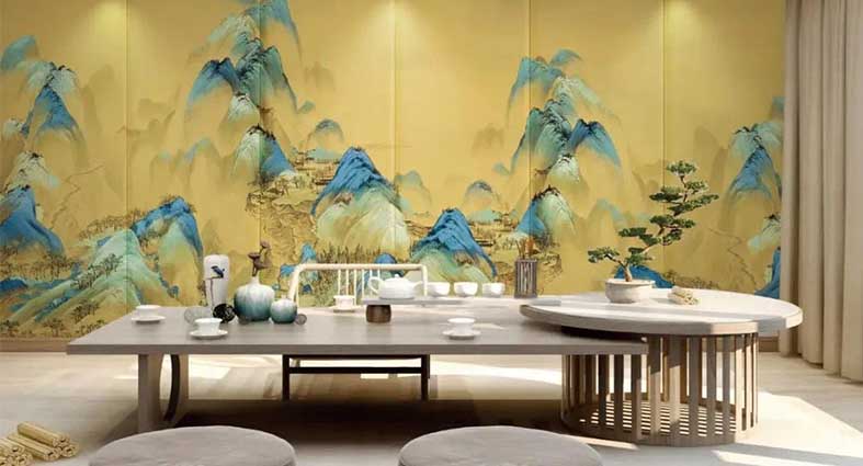 近萬種素材圖庫、百余種基材、進口環保噴繪墨 精細電腦噴繪+3D打印技術、量尺定制,為客戶提供高端私定般貼心服務。 立體半透打印—底材和工藝剛結合,表達“近實遠虛”“外實內虛”的繪畫構圖手法。